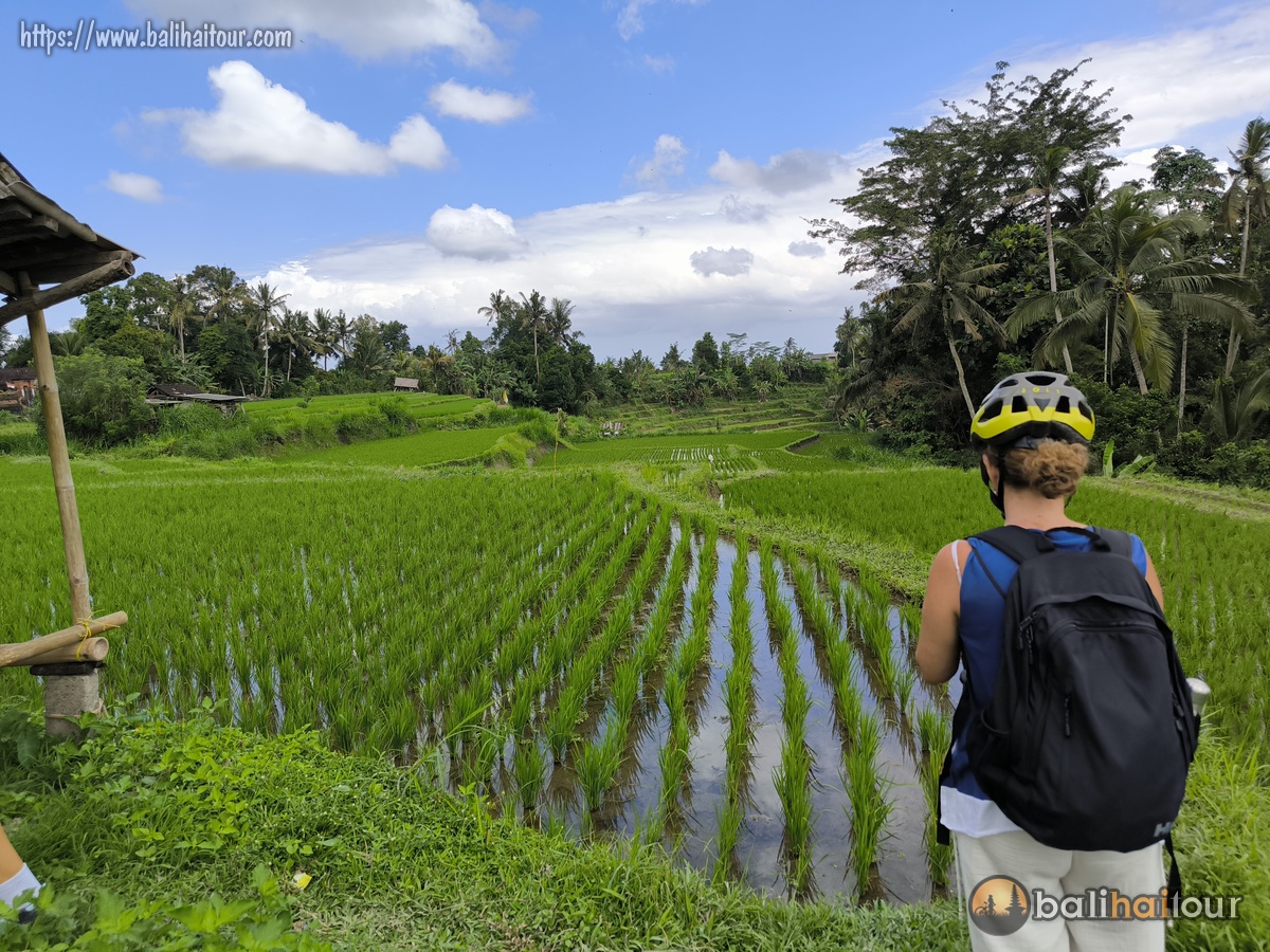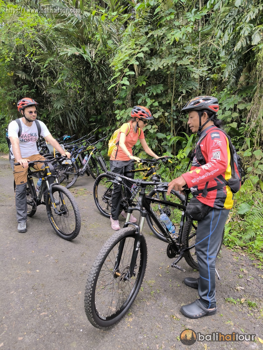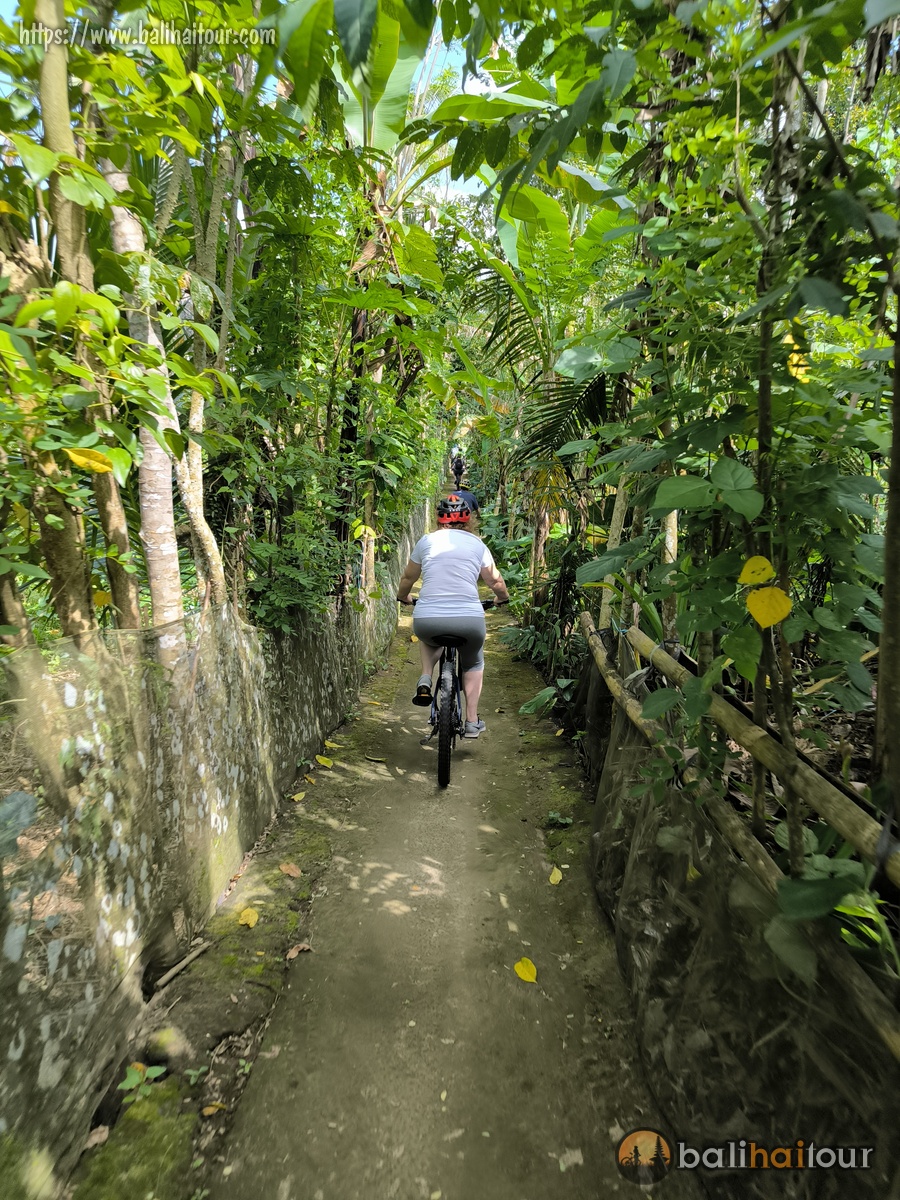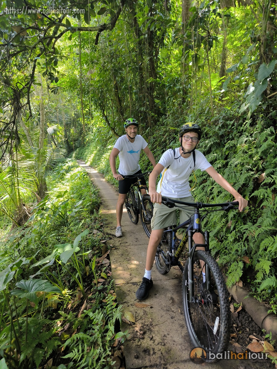 Bali countryside cycling tour photos from our 2025 Italian guests, showing rides through bamboo forest, lush rice paddies, Kehen Temple, village farms, traditional handicrafts, and hidden back-road scenery