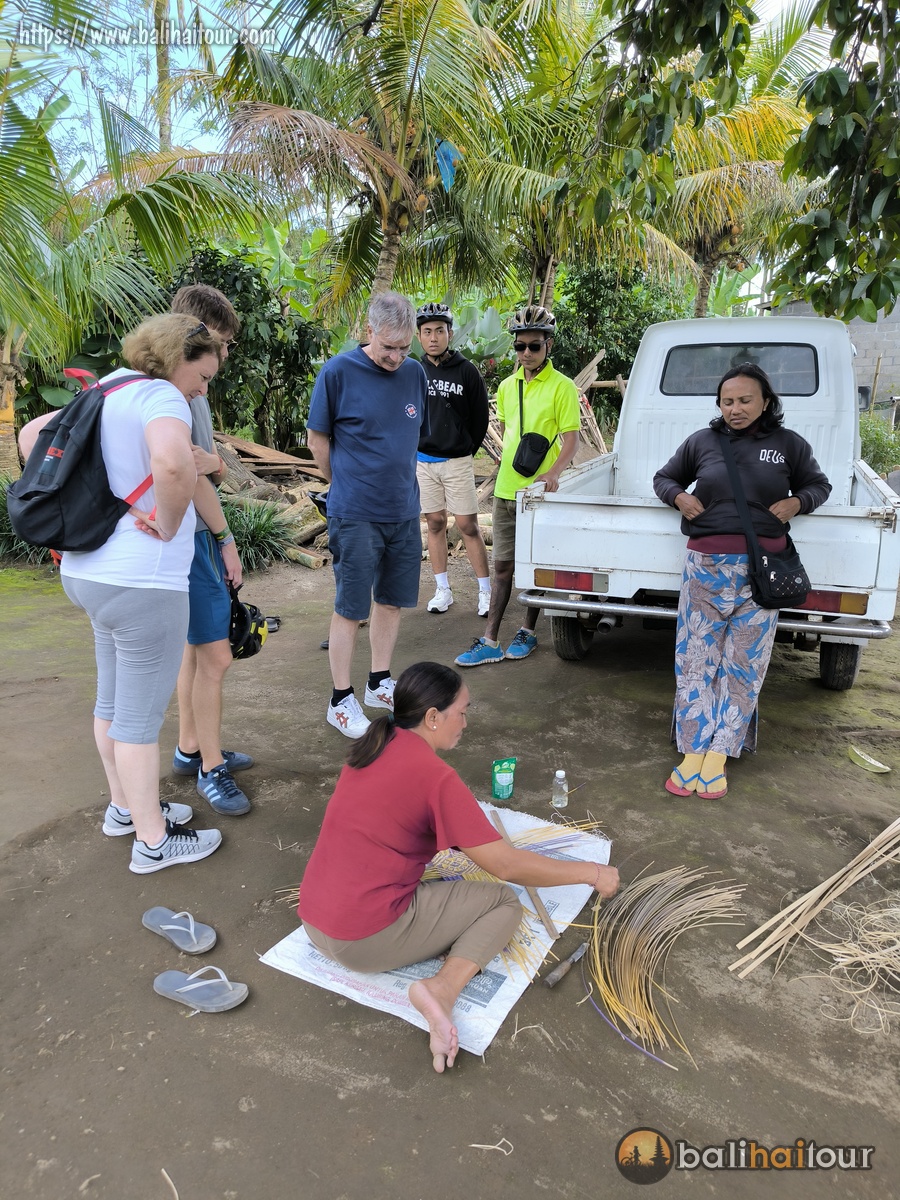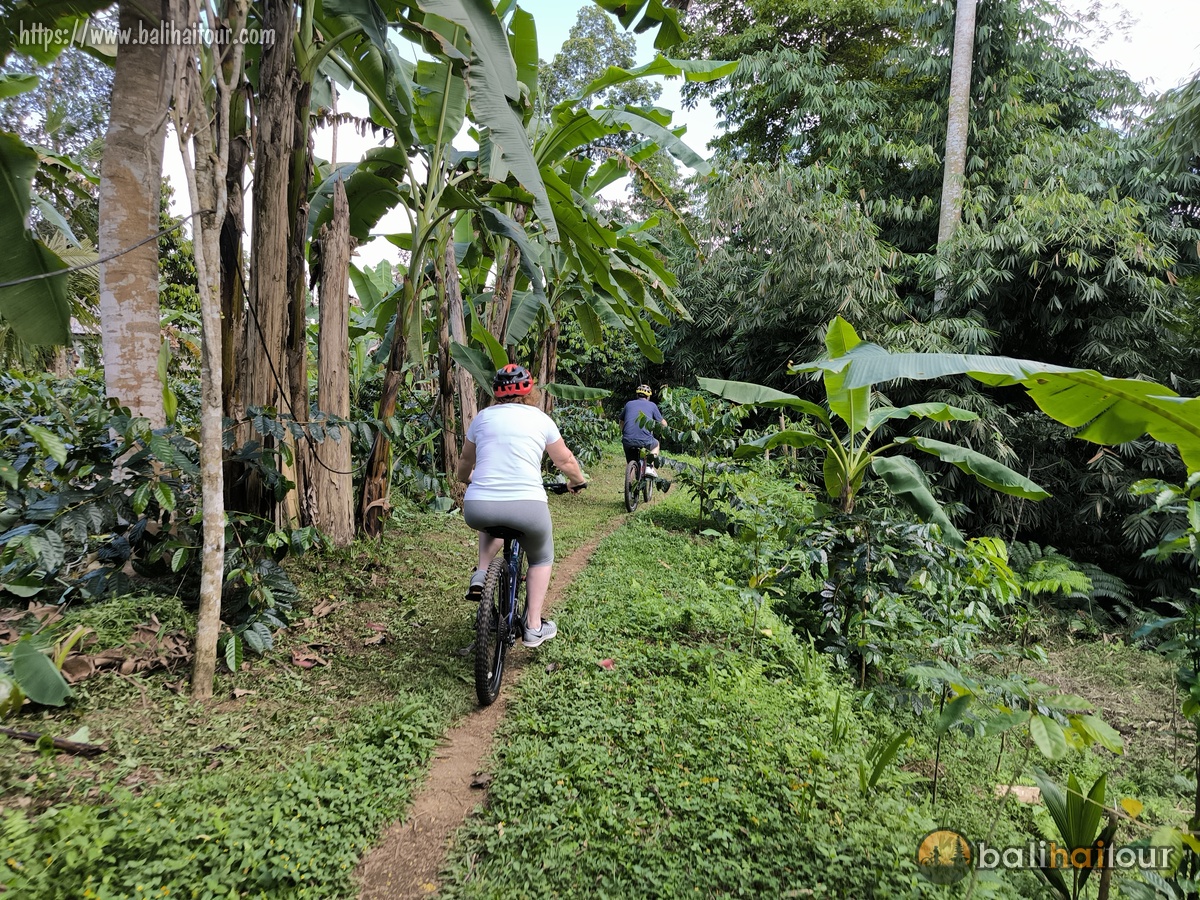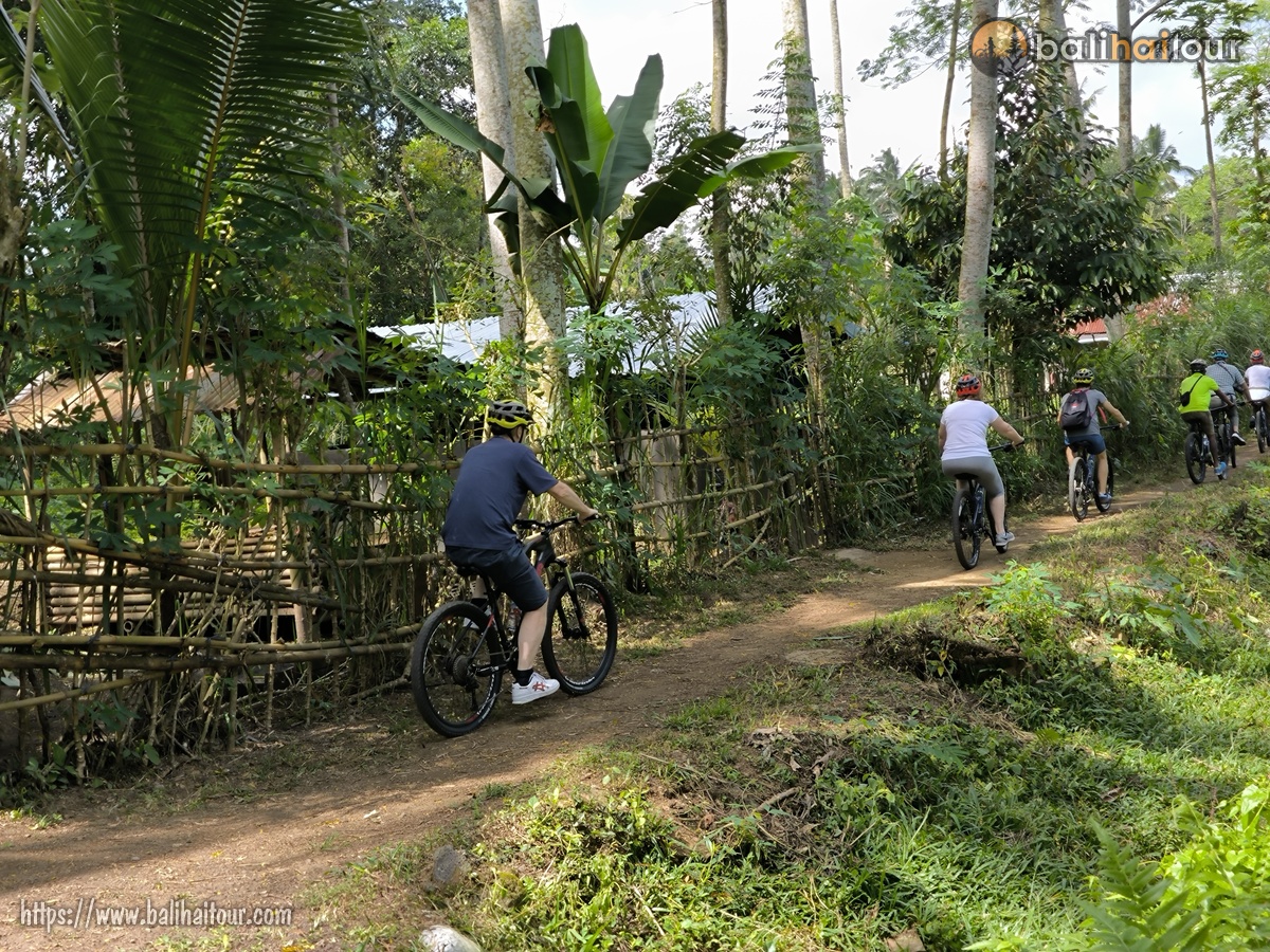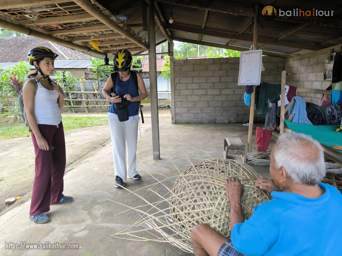 Bali countryside cycling tour photos from our 2025 Italian guests, showing rides through bamboo forest, lush rice paddies, Kehen Temple, village farms, traditional handicrafts, and hidden back-road scenery
